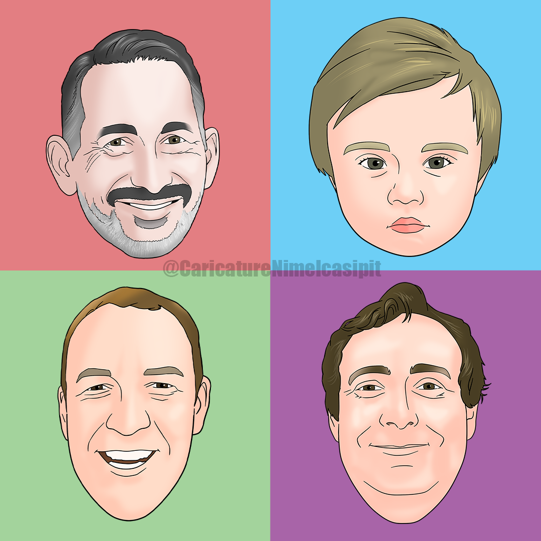 Check out these headshot cartoons I created for Gary, Brennan, Andy, and Roger. If you’d like a similar commission, feel free to message me!